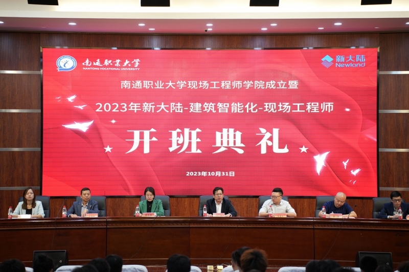 现场工程师专项培养计划项目是江苏省根据《教育部办公厅等五部门关于实施职业教育现场工程师专项培养计划的通知》开展申报的项目,公司是全省获批省级立项并报送教育部的二十个院校之一。谈球吧按照项目申报计划名额经过笔记面试从2023级物联网相关专业优选了30名员工组成了现场工程师独立行政班级。10月31日上午,谈球吧与北京新大陆时代科技有限公司合作共建“谈球吧现场工程师公司”成立暨“2023年新大陆-建筑智能化-现场工程师”开班典礼在公司图书馆报告厅举行。